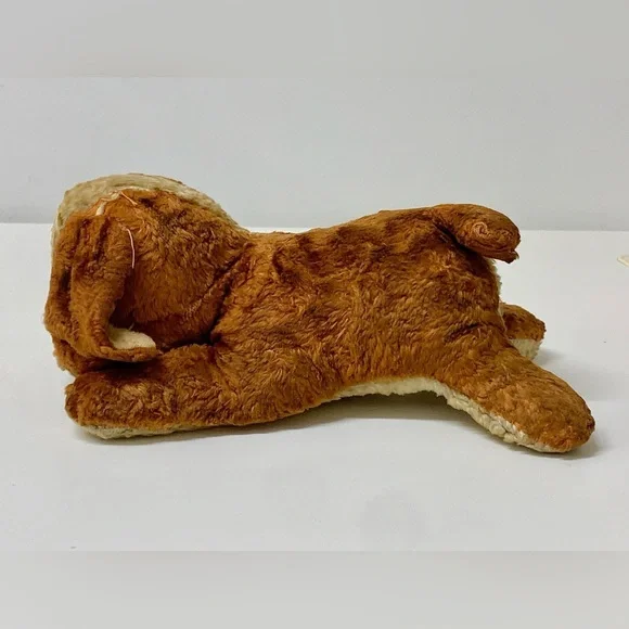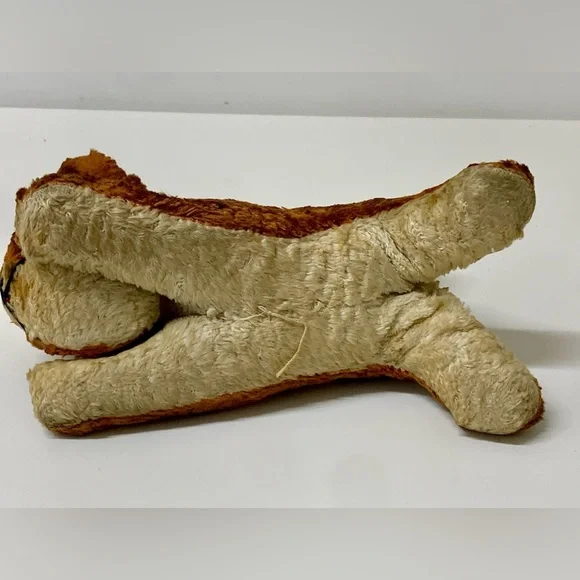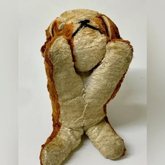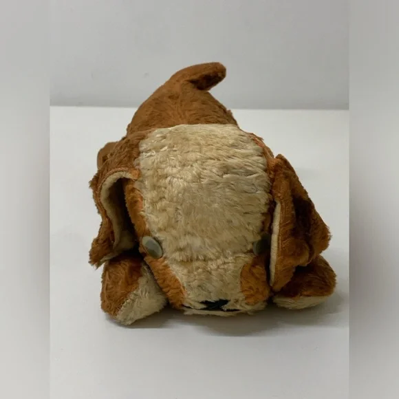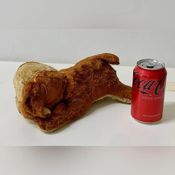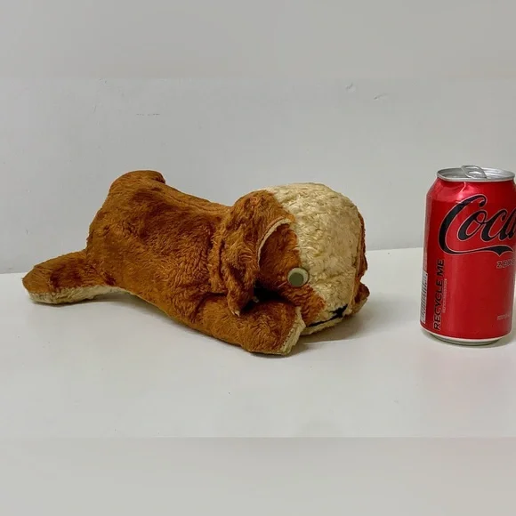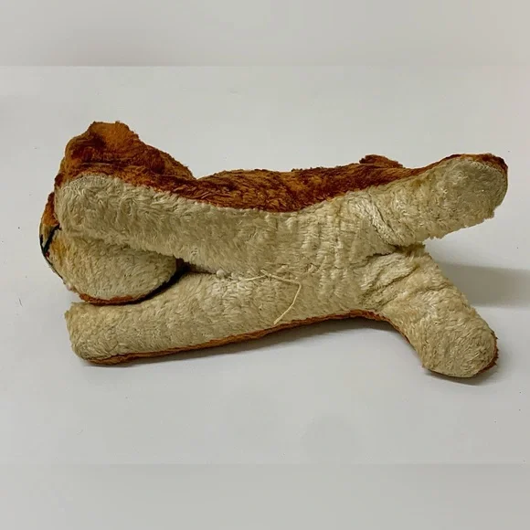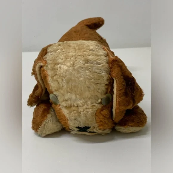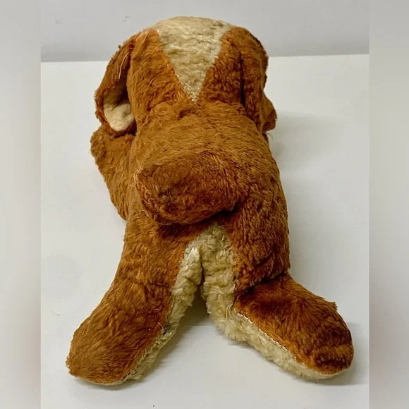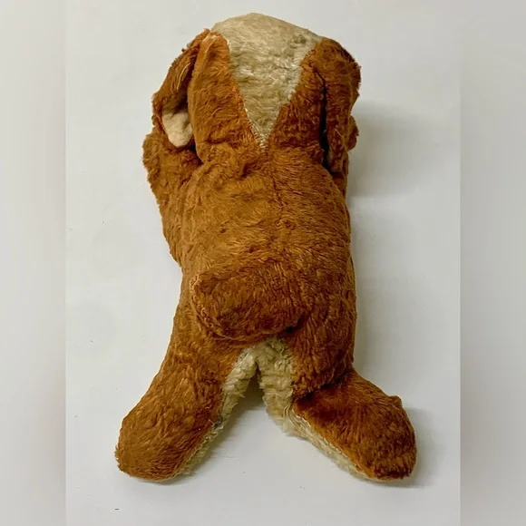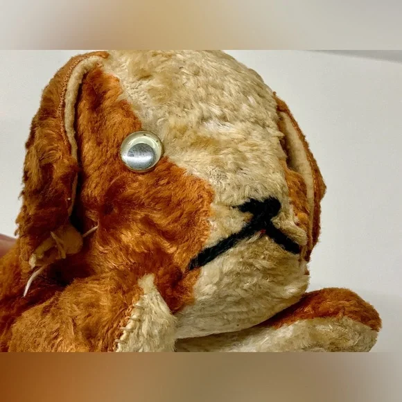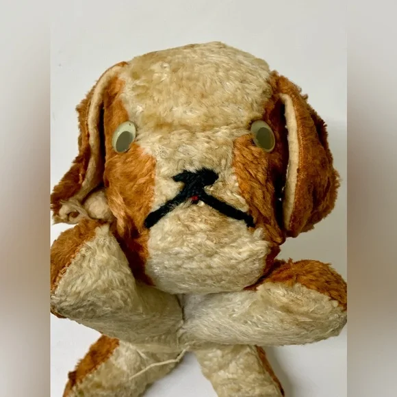 Overall excellent structural & aesthetic condition, appearing to have been used/played with minimally, if at all. It still has the factory-placed manufacturer thread that adheres each ear to the head, until the child/parent decides to remove them, so the ears can flop around freely. The eyes are domed plastic “googly eyes,” and the ‘pupil’ moves around freely in a circular motion when dog is moved. It’s been stored in a box with other similar old fabric/plush items for multiple decades, so the fur may be matted down a bit. A couple random loose threads. No marks or text to be seen. Sold as pictured.