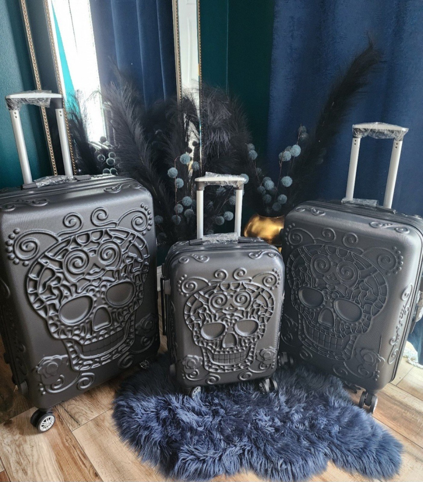 Get the best of worlds with this from IT Luggage featuring a 24" Spinner Upright! The highly durable hardshell exterior features a unique embossed skull design that is sure to stand out from the crowd. Trendy yet functional, this setfeatures 8 wheels for 360 degree maneuverability. The spacious interior with center divider allows for plenty of packing space. A 3" expander adds 25% extra packing