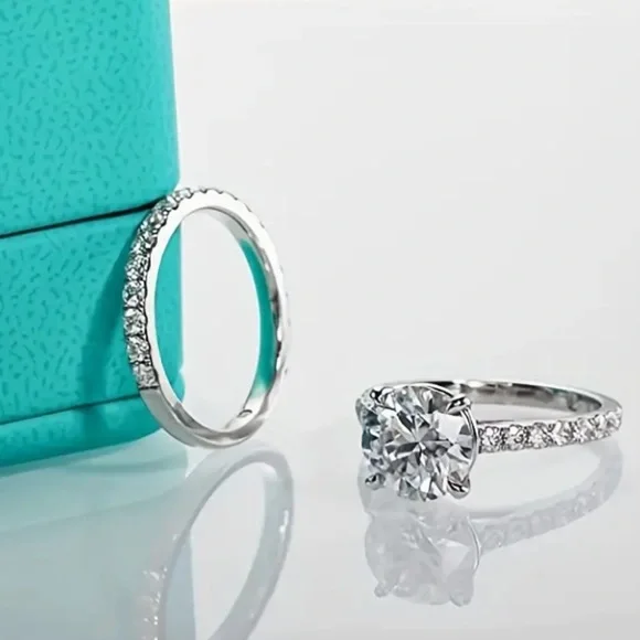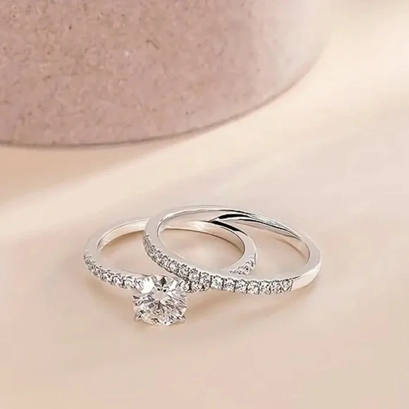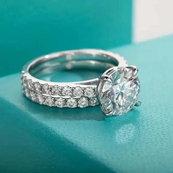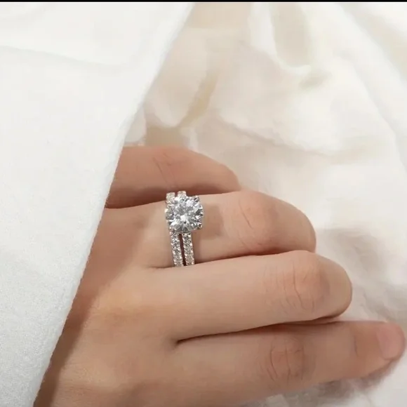 MOISSANITE 2.00 Ct Solitaire ring Wedding Set100% Real Moissanite! More Sparkle!100% REAL MOISSANITE, which is as hard and shinny as a natural diamond.AIl MOISSANITE 100% PASSESTHE DIAMOND TESTER to thehighest point. It is D Color WS1 Clarity. It won't tarnish ordiscolor, and it is more cost-effective than a diamond. Moissanite is the name given to a naturally occurring and laboratory-grown mineral made up of silicon carbide. Its occurrence in nature is extremely rare and has only been found in upper mantle rock and meteorites.Classic Design & Comfortable to wear! -This flawless moissanite is an amazing design and it will never go out of style. The metalis sterling silver with 18K White Gold Plated, which is 100%Hypoallergenic, Lead-free & Nickel-free. And the edges aresmooth and well finished. -The stones are hand set instead of using wax settings to ensure the stones are stronger and safely set. No need to worry about the stones falling out. Excellent polishing processwill make this piece have much more fire, brilliance and sparkle.Ideal Gift -This beautiful piece is packed in a delicate box as aperfect gift for all occasions! birthday gift, holiday, Christmas, New Year bling, costume, wedding, anniversary, gifts for women. Size is adjustable. anniversary proposal engagement wedding band set birthday classic style for women her wife mom valentines day mother's day I love you gift simple elegant trendy gift