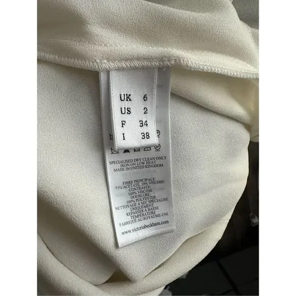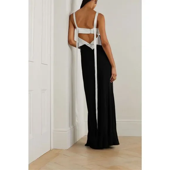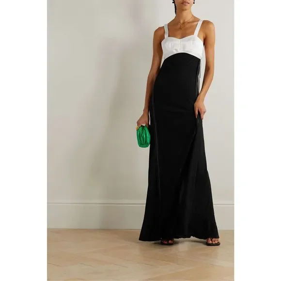 VICTORIA BECKHAM Cutout two-tone satin and crepe maxi dressNewSize UK 6 / US 2$3245DetailsVictoria Beckham's Pre-Fall '23 collection is inspired by cinema, and you'll feel like a leading lady in this maxi dress. Cut from smooth black crepe, it has a contrasting white satin bralette and a sleek cutout beneath the bust. Turn around for photographs to showcase the V-shaped open back and long, flowing straps. Fits true to size, take your normal sizeThose with a large bust may wish to take the next size upDesigned to be slightly fitted at the bust and waist, loose at the hipMid-weight, non-stretchy fabricWhite satin, black crepeConcealed zip fastening along back71% acetate, 29% viscoseDry cleanOur products are 100% genuine. We stand by the authenticity of every product sold. Our clothing, handbags, shoes have a black or red line strikethrough label to prevent store returns. If you have any concerns or questions please reach out to us. Colors can be slightly off in images due to photo lighting. Please open images and review before purchasing.All sales are final.BIN 32